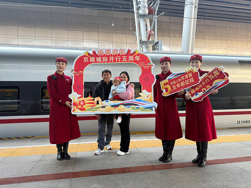 人民网北京12月28日电 (记者尹星云)记者从中国铁路北京局集团有限公司(以下简称:中国铁路北京局)获悉,12月27日,京雄城际铁路迎来全线开通运营五周年,雄安站同时迎来开通五周年。五年来,这条连接首都北京与河北雄安新区的高速铁路,累计运送旅客超1300万人次,列车开行数量由初期每日32列增至59列,成为京津冀协同发展的重要交通纽带。
